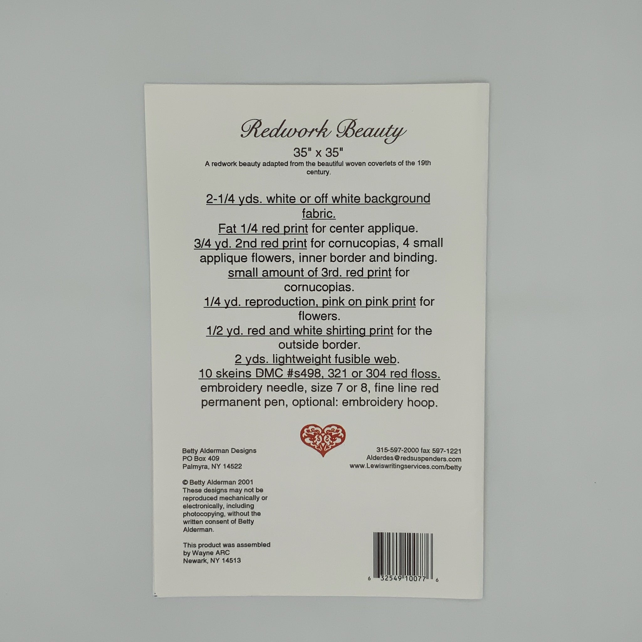 Redwork Beauty - Betty Alderman Designs - Applique Embroidery Quilt Pattern